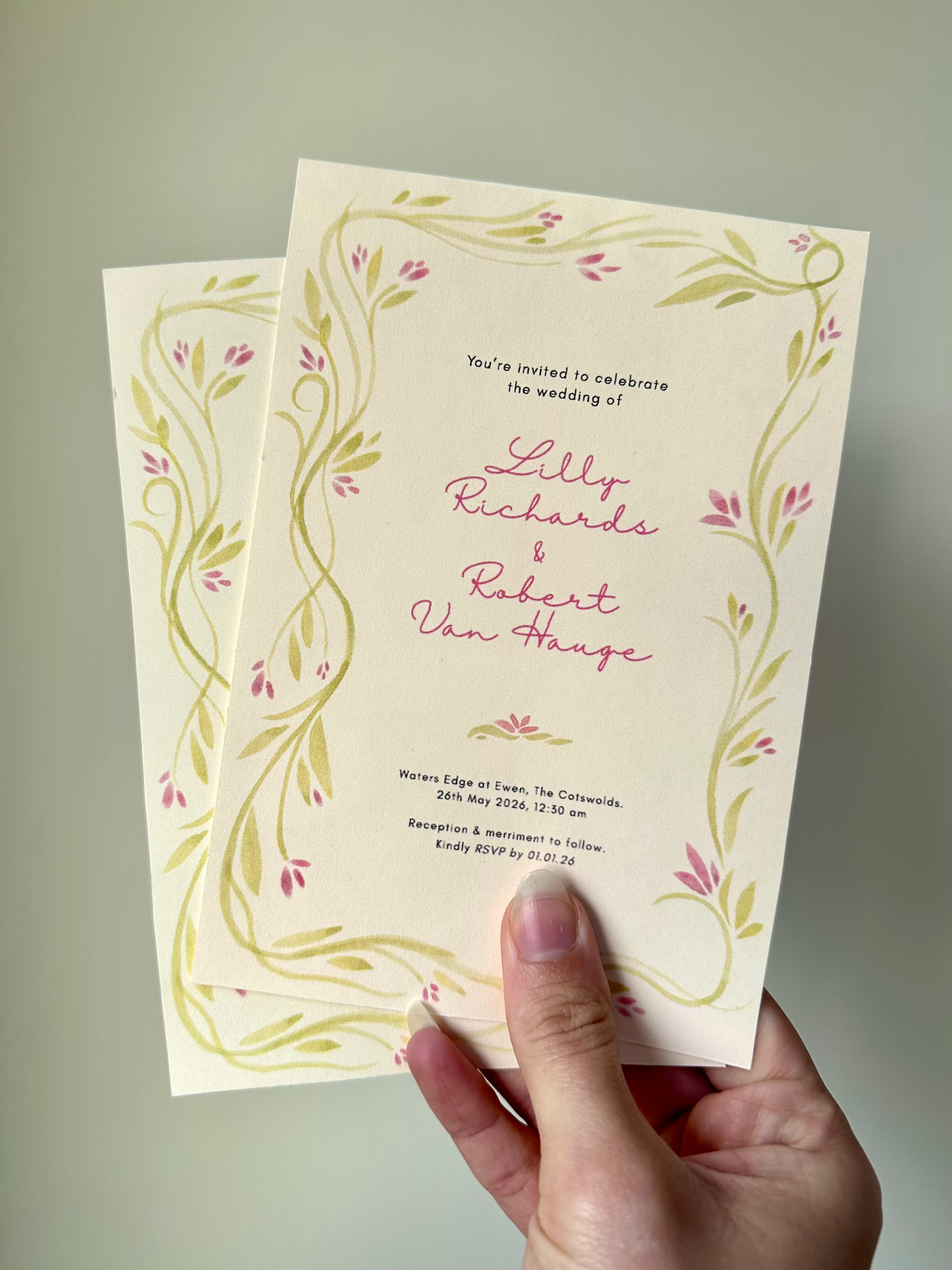 Our range of illustrated, editable wedding templates will be coming very soon. Enquire today for further information about our template drop or to discuss custom commissions.