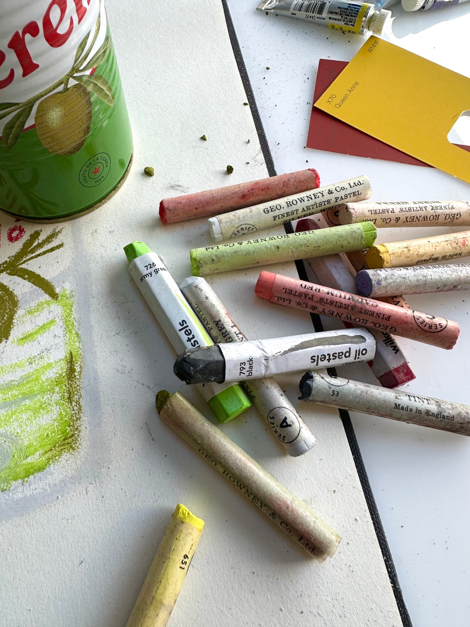 My new Paint & Sip sessions focus on helping people create quirky still-life paintings of modern everyday items — think Perello olive cans, sardine tins, Maldon salt boxes, seasonal fruits and veg, and fresh flowers.